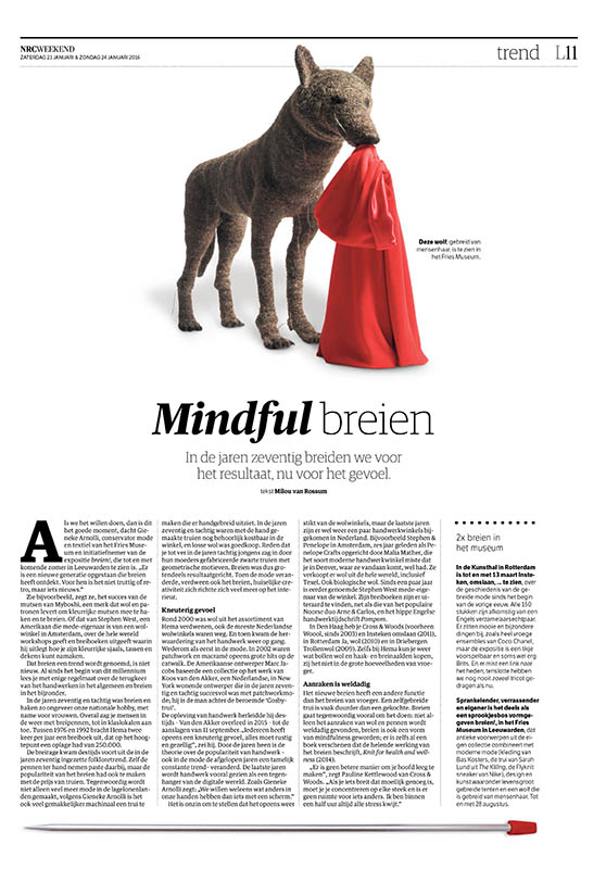 'Mindful breien', article about the knitting exhibition in the Fries Museum, NRC Januari 23.