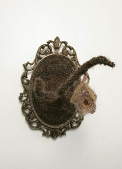 CR. I don’t see myself as a craftsperson. I’ve never learned to felt properly. If it looks good enough I stick with it. Some of my old felted pieces have bleached in the sun because of lemon in the soap used for felting, but I’m not interested in the process of how it’s done; it’s only a means to an end. Spinning can be relaxing but irritating because it takes a long time to spin even a small ball of hair. I find I can think very well while I’m spinning, and I use the time for thinking about new works and texts. So the spinning is an important part of the work, and when people ask why do I not find someone to spin for me, I say, “ No! I need it, I don’t like it, I hate it, but I decide what sort of thread I need – a hairy thread or not – but the craft is just a process to develop the artwork.