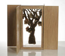 CR. ?This work is still in progress: frames with crochet branches and knitted nest boxes, all made of human hair. It’s about family and society, the roof is the father and the house is the mother. The houses are all about innocence, and individual space. I am asking why the concept of family is so strong. Even though we move away from our parents, we are still attached to them. It’s a very emotional concept for me.