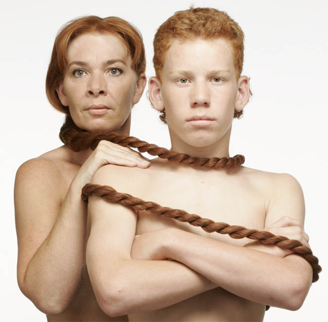 Installation 'Sisters' (sculpture and video) in medieval cellar in Haarlem.